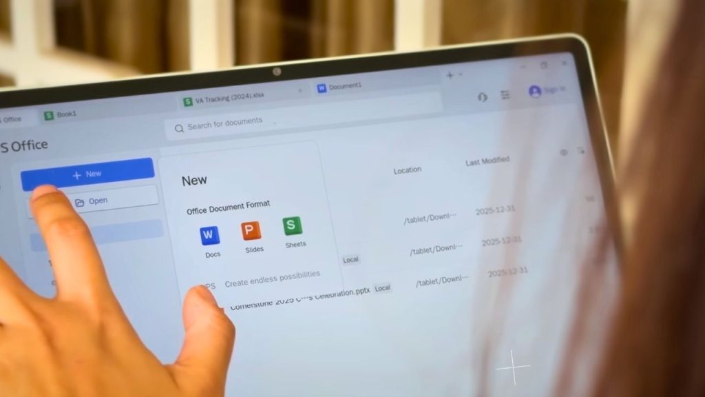 Huawei bundles its latest PC-level WPS Office 3.0, which was one of the biggest pluses for me. This is not just a mobile interface scaled up — you get a full desktop-style layout that works properly with a keyboard and mouse.
